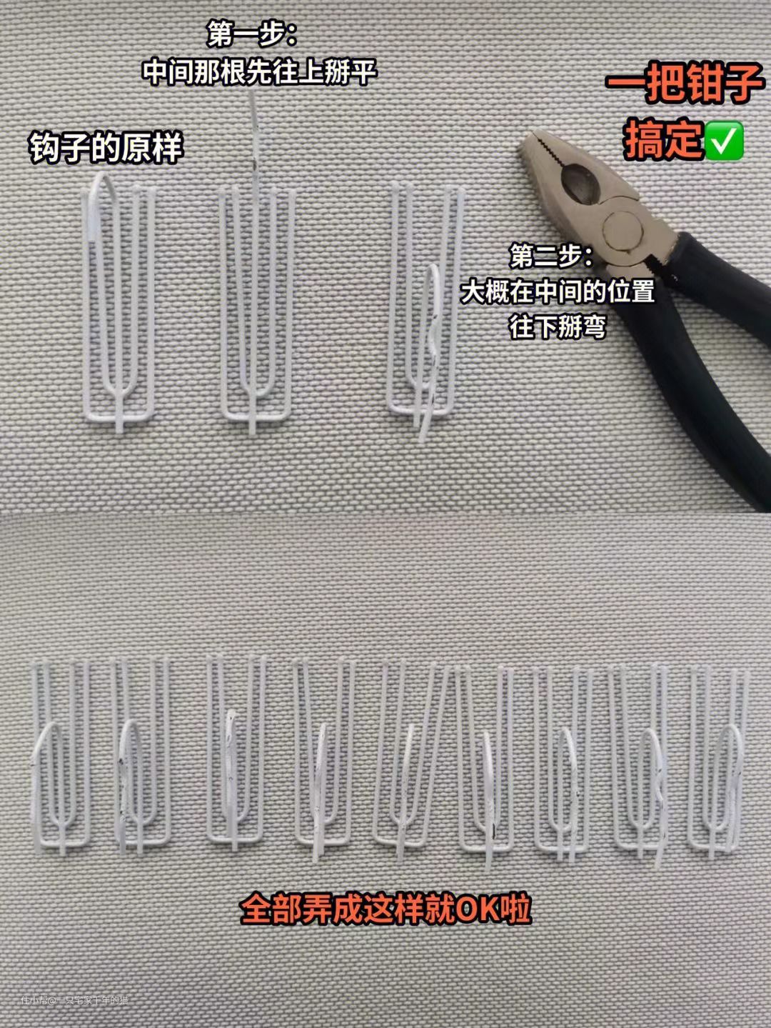 ②把挂钩中间的那根往上掰平,然后在中间位置往下掰弯。
