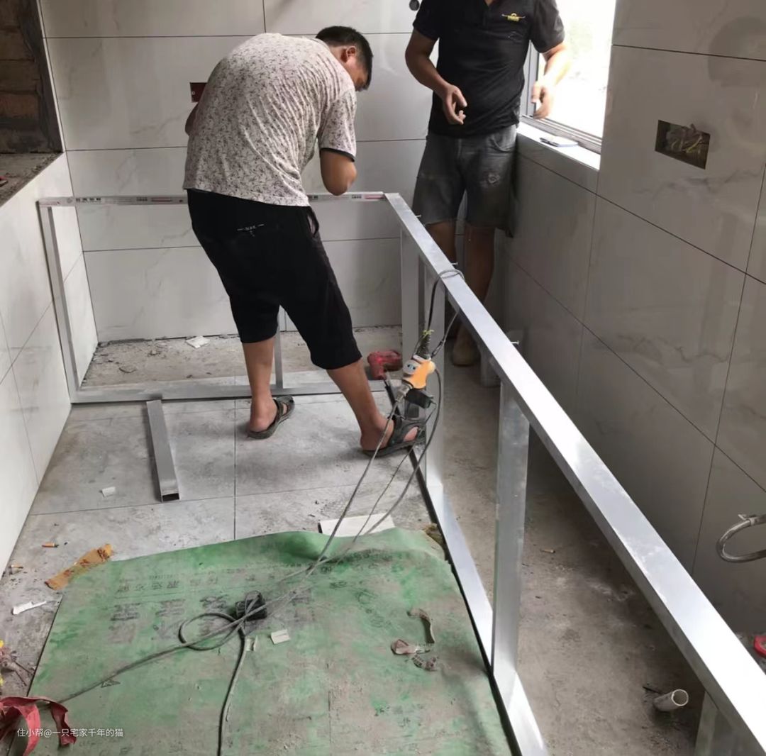 师傅利用钢结构和瓷砖,做了内部设计,还按照我的需求做了高低台的设计,二个师傅一天的功夫就做完了,看完师傅的手艺直接震惊了,不得不承认老师傅就是厉害。