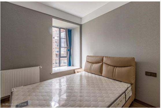 卧室的背景一改浅色系,应用冷灰色调与床形成鲜明对比,增加更多的空间层次感。加上白色衣柜的配置,非常形象的黑白灰调调,禁欲系空间由此达成。