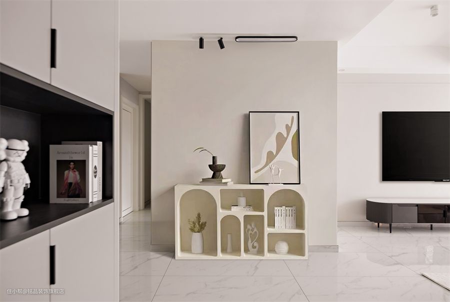 另外,如果有人觉得直接进入客厅没有隔断不好,那么可以做隔断来装饰,这也形成了一个“独立式玄关”。