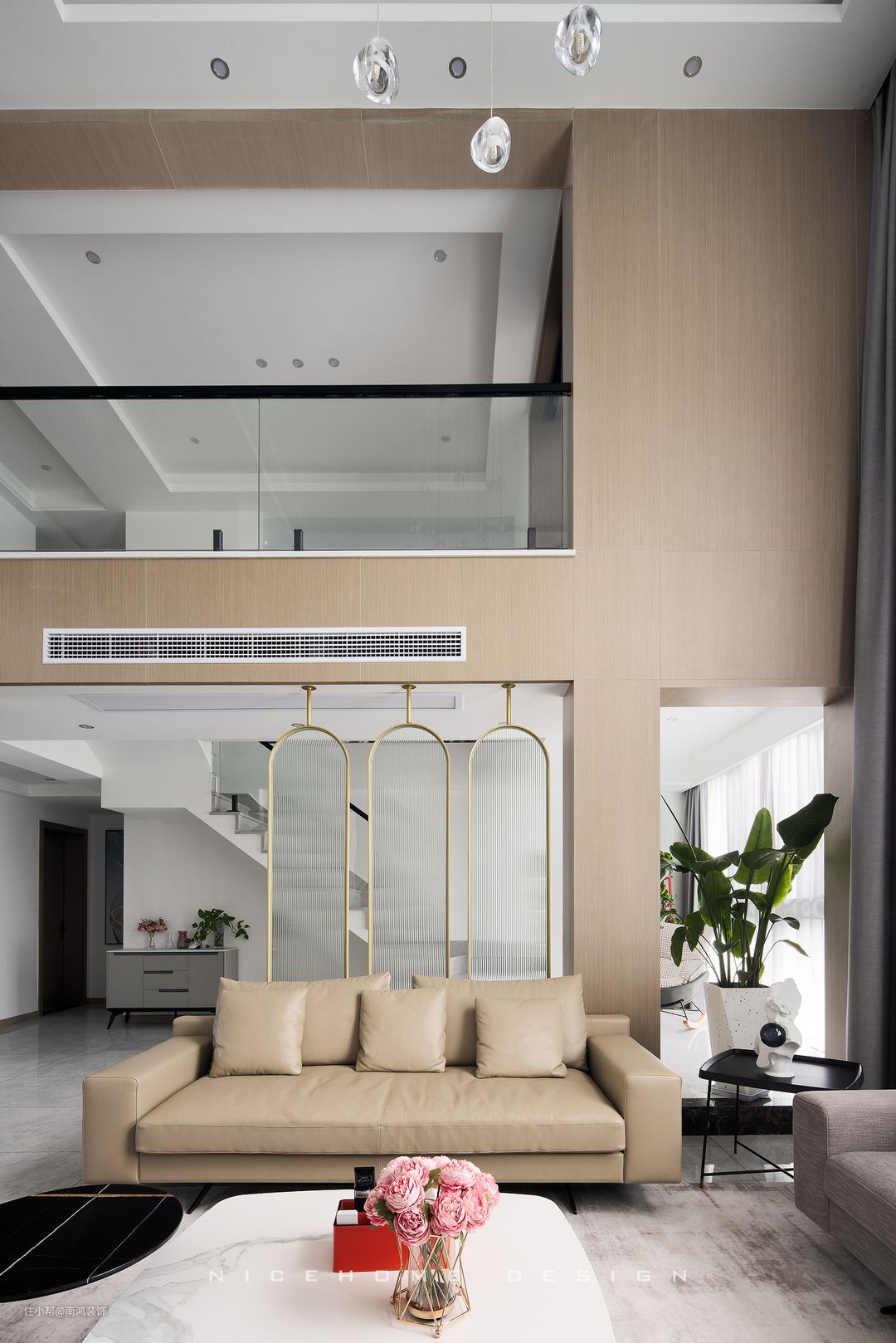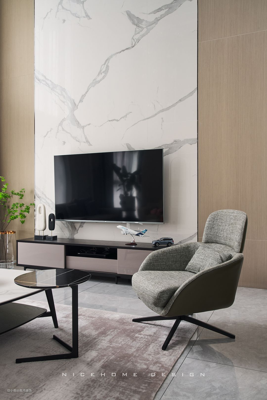 原木分火遍全网,要想出效果,木地板通铺是一个非常重要的手段;但木地板通铺,一是造价比较高,差不多的木地板一平200+,要比800*800的瓷砖一平几十块钱贵得多;二是木地板越多,甲醛越多,环保是否能保证?三是木地板耐划、耐磨、耐造性都比不上瓷砖,而且容易变形。
