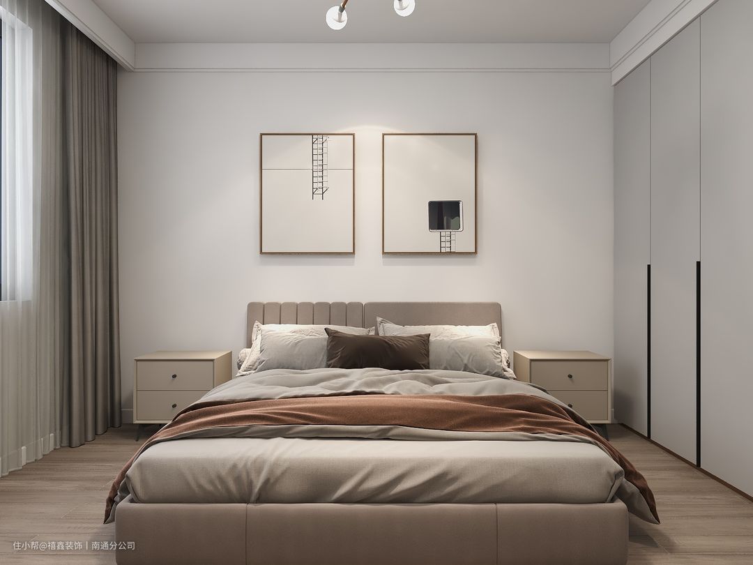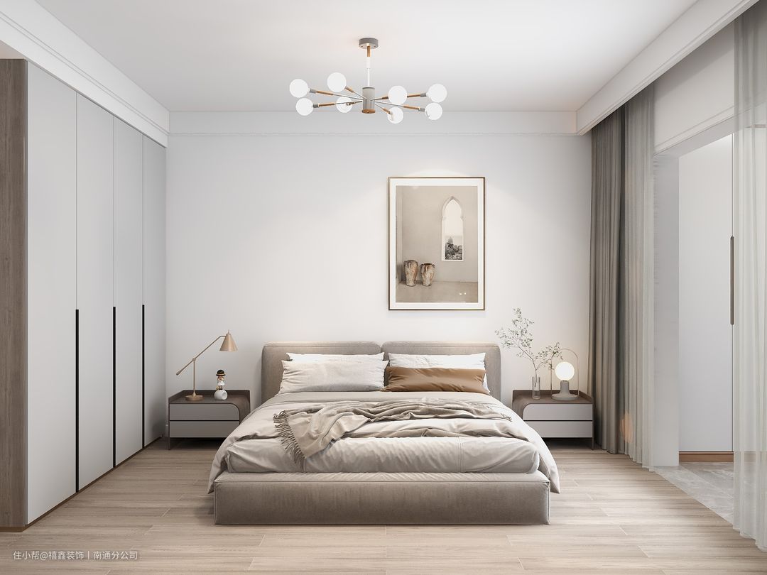 【主卧】主卧秉承简约原则,以白色搭配原木组合出温馨平和的室内氛围,点缀上一副简单的挂画、一株自由舒展的绿植,简约又不失自然,更让人感到舒适、安闲。