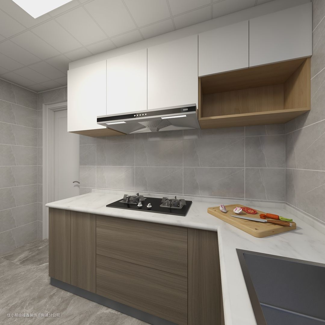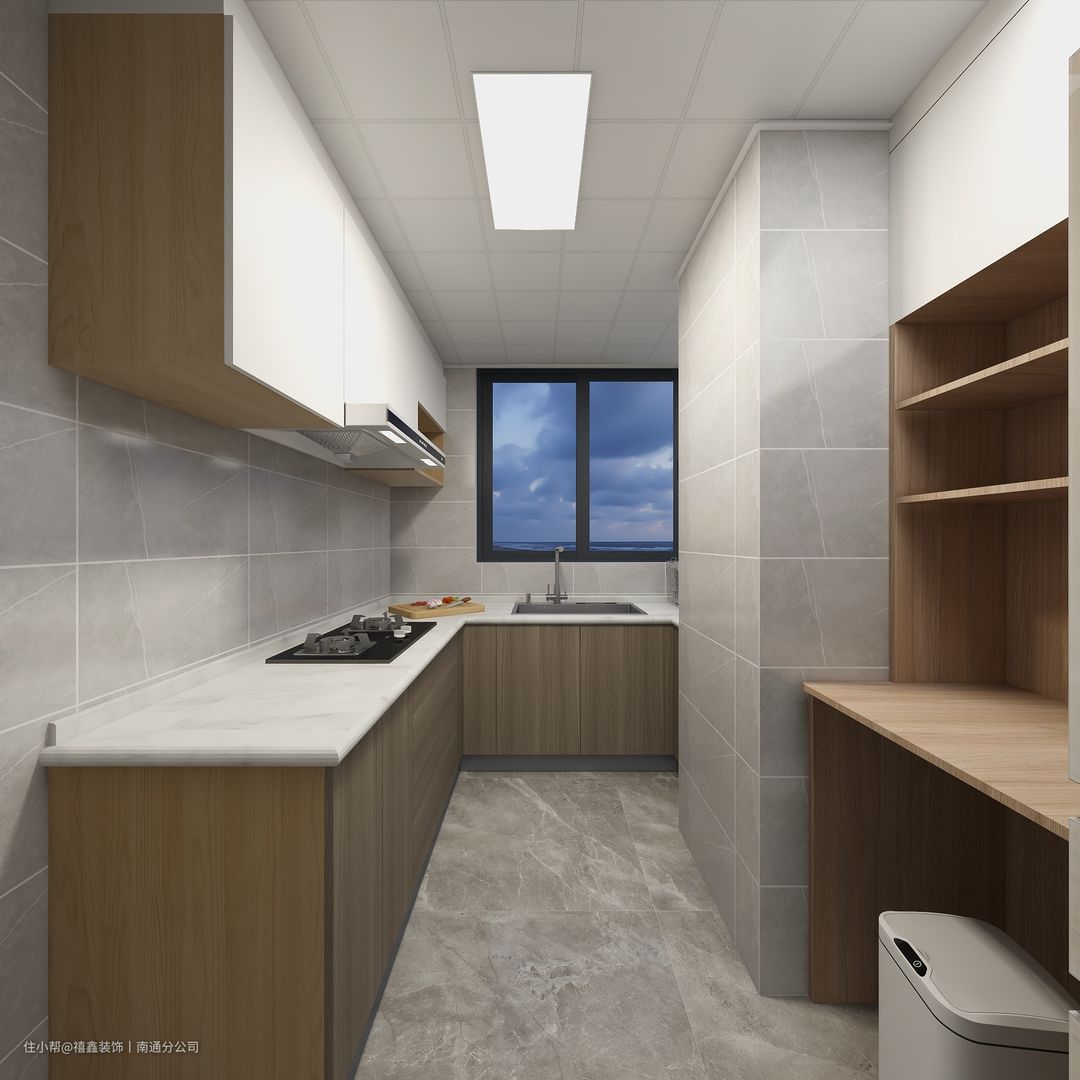 【厨房】厨房空间不是很大,为了节余出足够的活动空间而做了L字形操作台。经过合理布局后,适配下厨者的动线,帮助减负。原木与白色的橱柜简约温润,无把手的设计自然又简便。