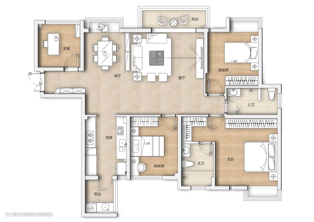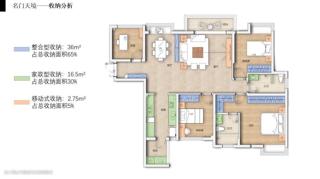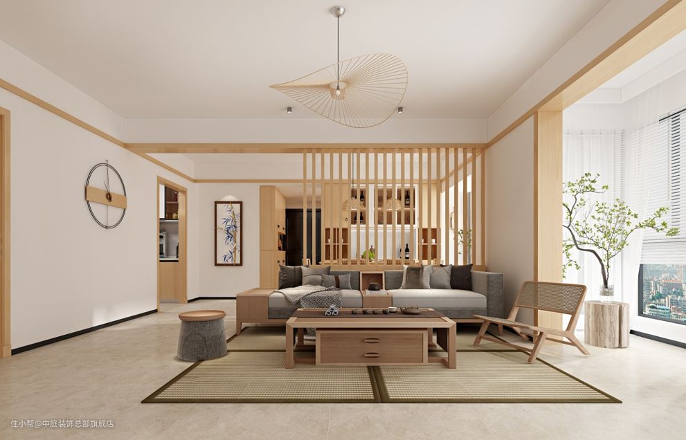 业主需求:一家四口人,两个女儿,家里请有阿姨,这套房预计住5年时间,要喜欢的日式风格,不过预算投入不多,要性价比最高。要求收纳空间够多,同时合理规划。