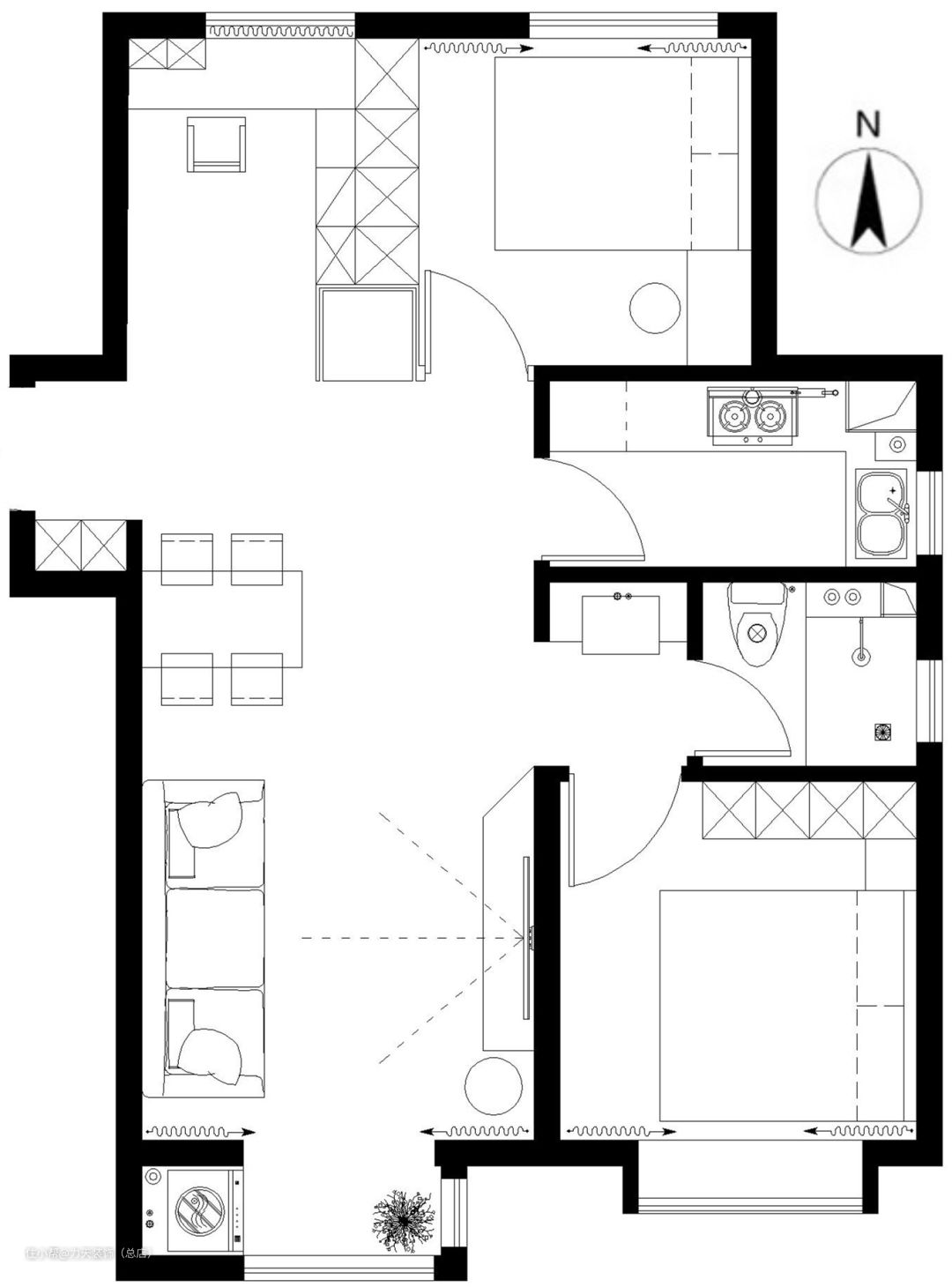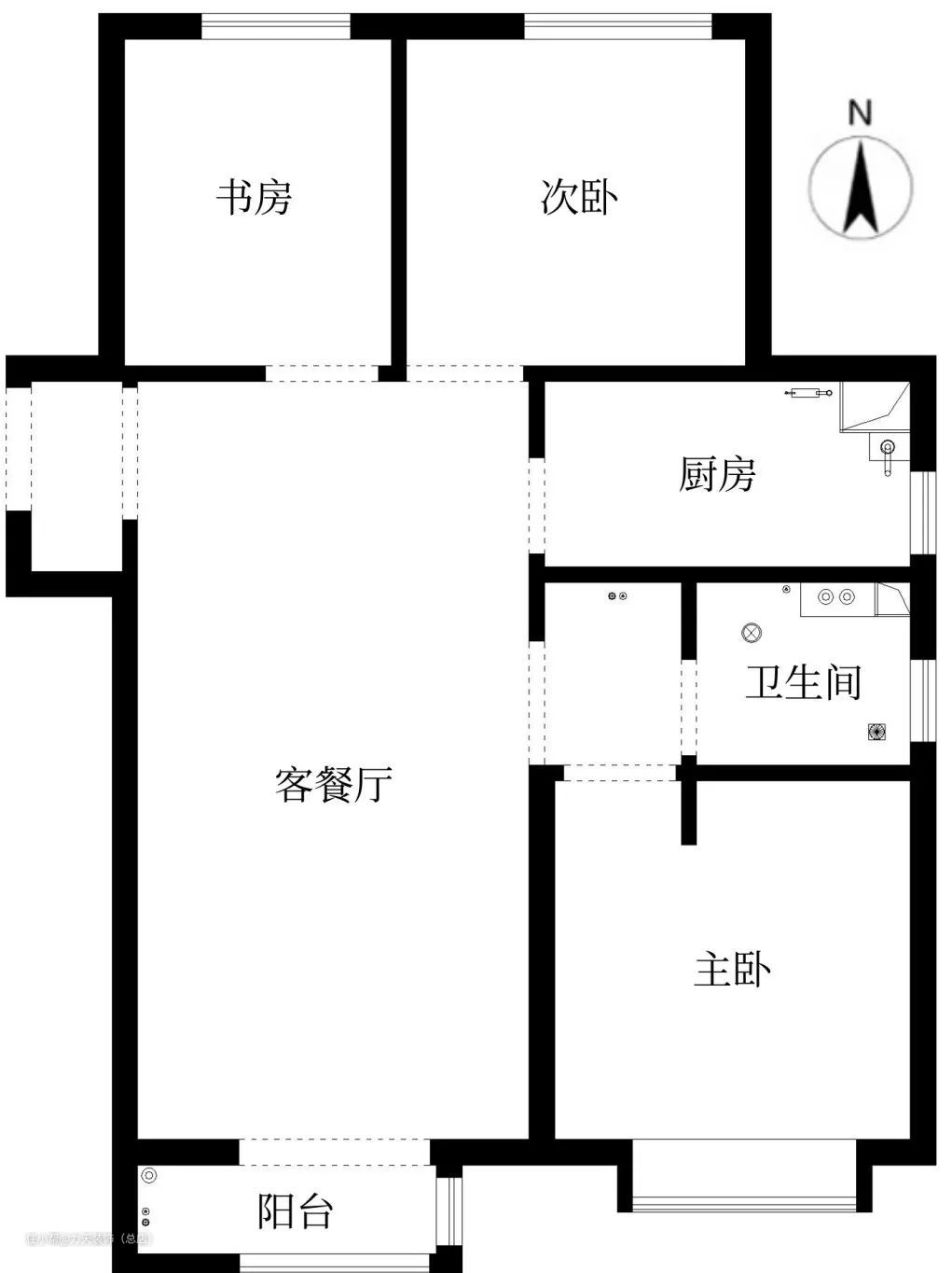 本案户型相对方正,南北通透,小三居空间紧凑,但分间面积合理。