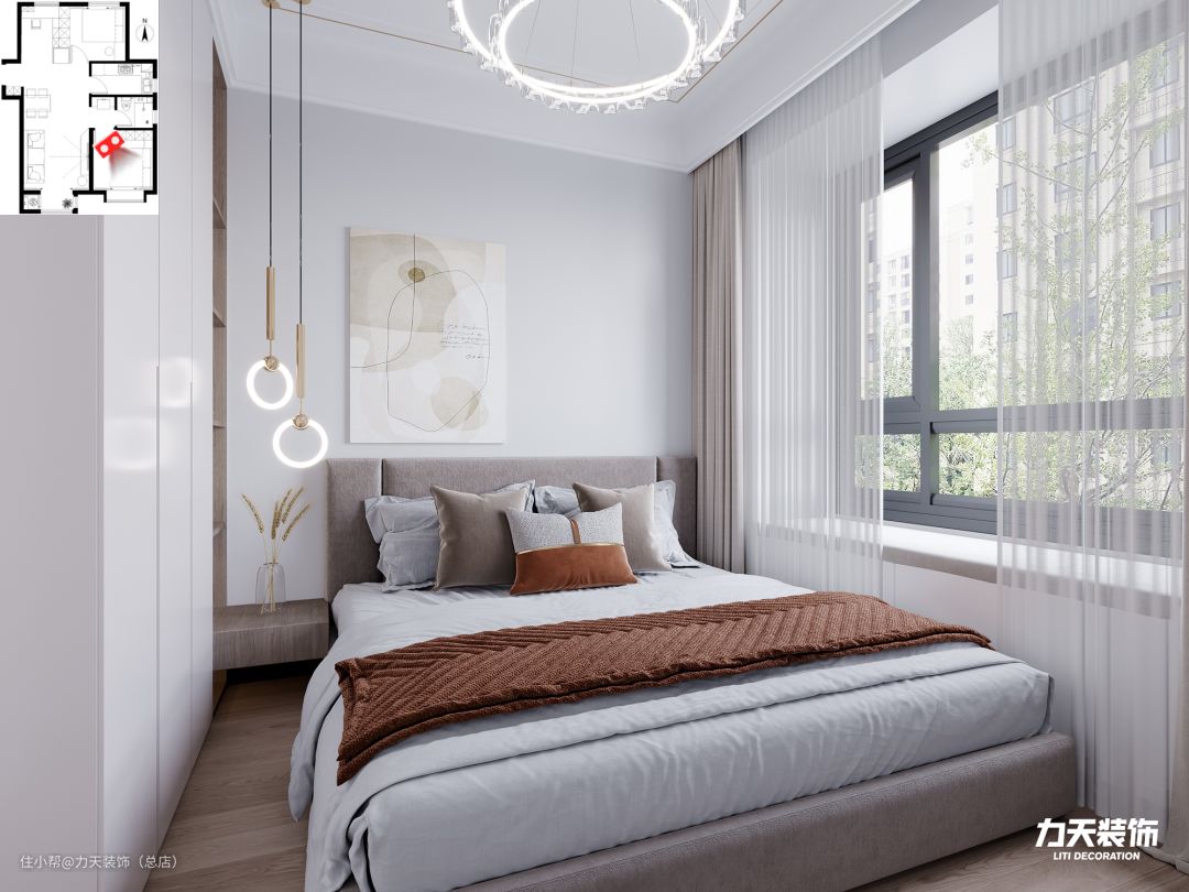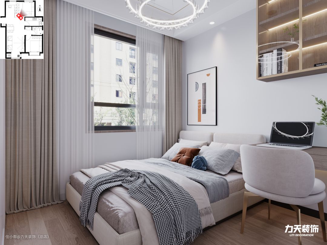次卧是空间结构变化最大的区域,拆除了书房与次卧间的隔墙后,卧室的使用面积得到了有效扩充。