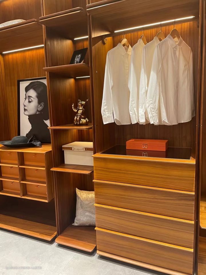如果只购买成品衣柜,直接参考上面数据购买,但如果想要定制缅甸柚木衣柜,那么实地测量尺寸后,根据卧室布局设计衣柜会更合适,不仅尺寸更精准,衣柜的风格样式更能与室内装修风格相统一。