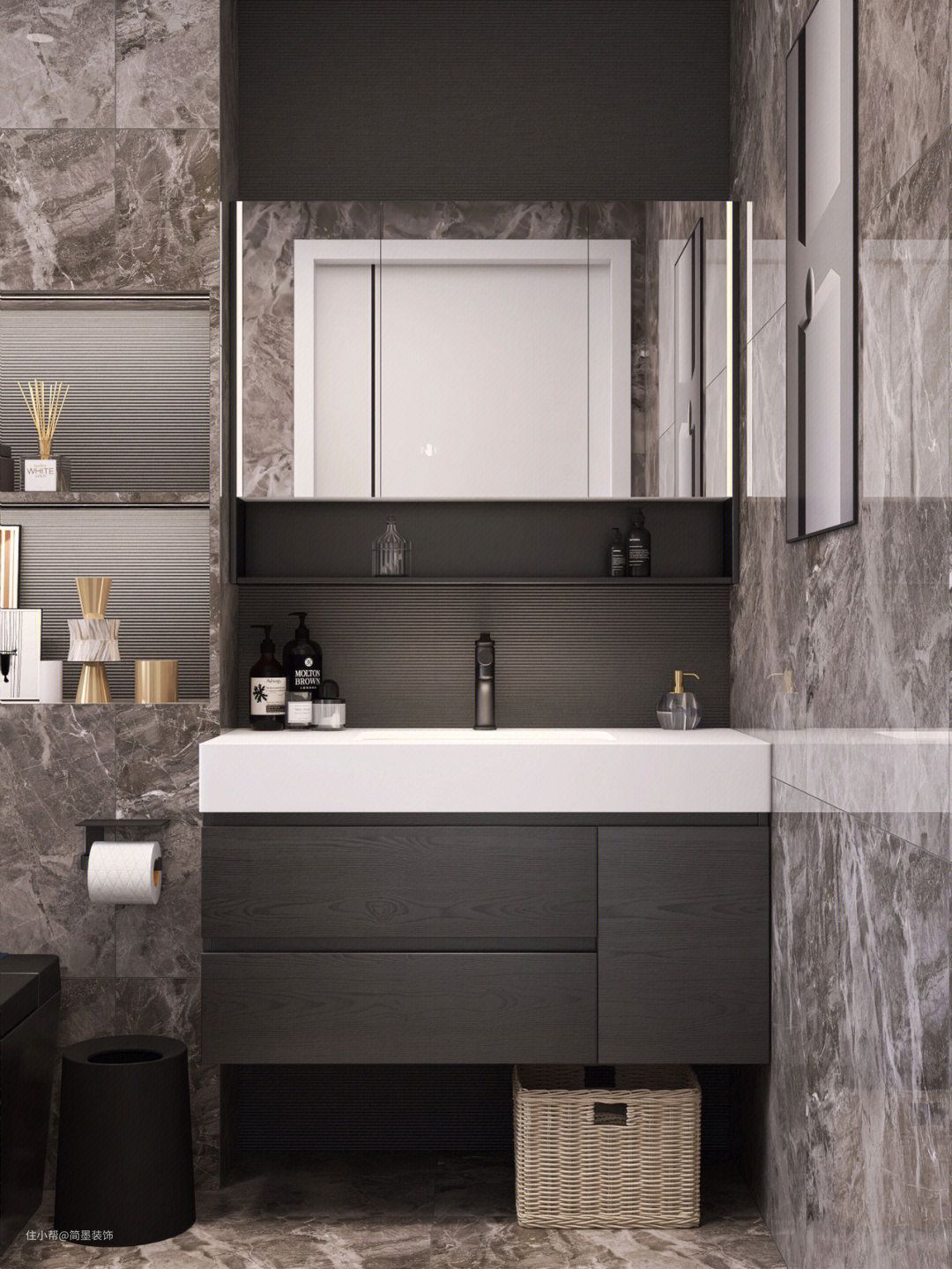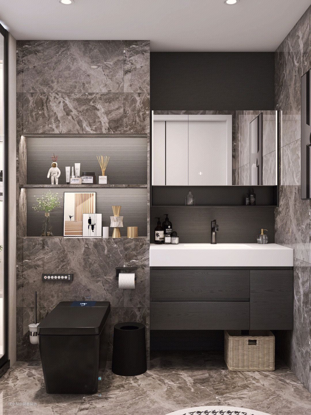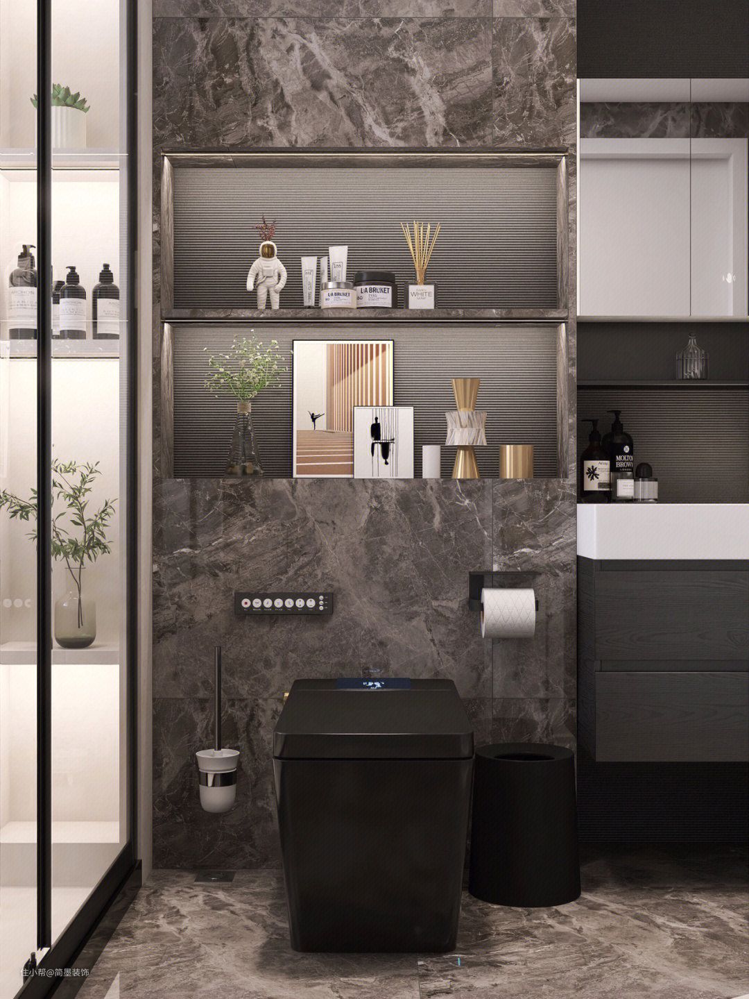 暗色系的卫生间,每一处都印着对生活高品质的追求,在这样的空间里,尽情去享受生活🖤何其幸福!