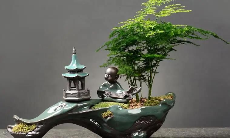 中式台面上的装饰花很好搭配,因为有的植物一出生就自带中式的符号,比如文竹、干枝梅、文心兰等。