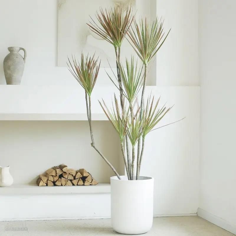 当环境中墙面用到软包、硬包、木饰面等,层次丰富,可以首选散尾葵;当环境墙面简单,比如就是乳胶漆的新中式,可以首选七彩千年木,搭配木质的家具,更能体现出中式的禅意。