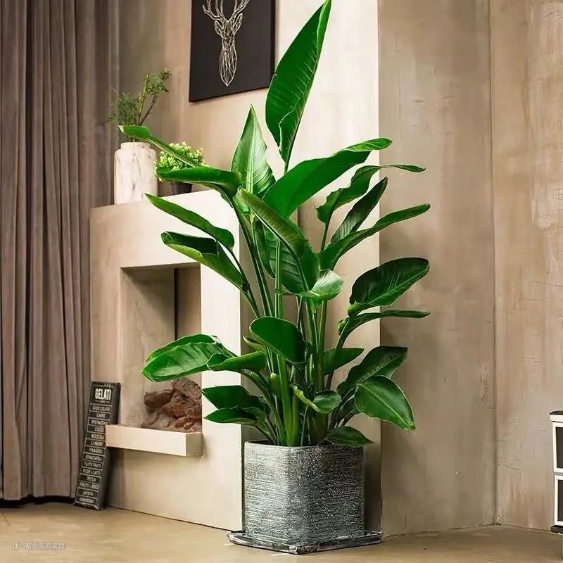 绿植的搭配可以首选天堂鸟、龟背竹等,天堂鸟是北欧风代表植物之一,自带清新的滤镜;龟背竹插在水里也能生长,是北欧风常用的大型植物。
