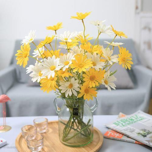 台面上的装饰花可以搭配小野菊、尤加利叶,小野菊自然不做作,符合北欧北欧崇尚简单自然的原木感觉;尤加利叶自带莫兰迪色系,低调又高级。