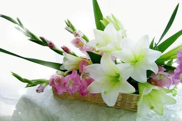 装饰花可以搭配吊钟和百合,吊钟被称为“业界爱马仕”,自带高贵气息;百合简单白色和绿色的组合搭配不会出错。