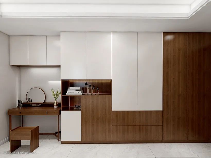 它不会有简单地增加横向衣柜的长度来加大储物空间所造成的拥挤感,而且颜值更高,无论是宽敞的卧室还是小面积卧室都适用。