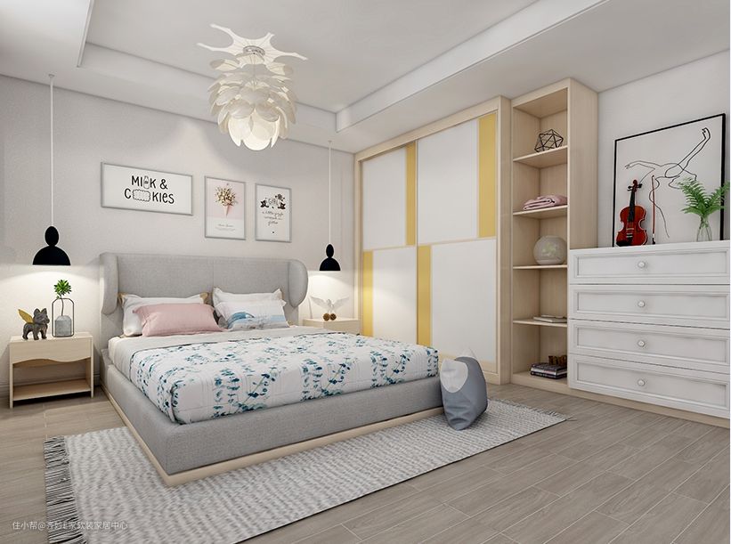 这种组合方式可以说是时下的爆款了,将空房像变如魔术一样变成温馨有格调的卧室,效果酷炫,设计新颖,很让人心动。