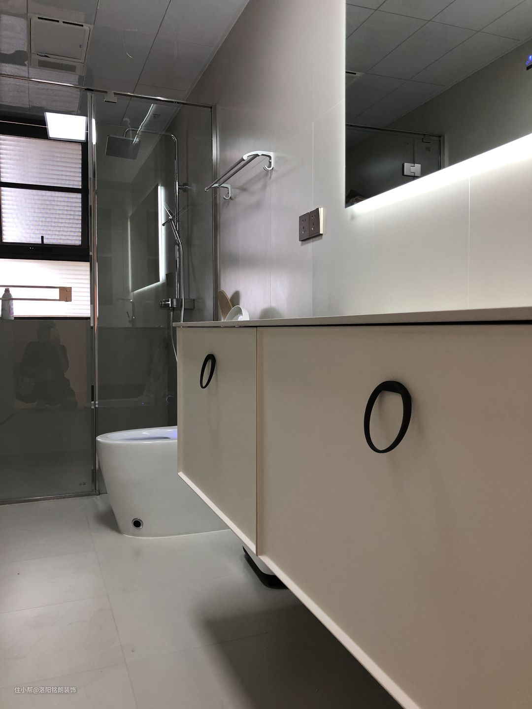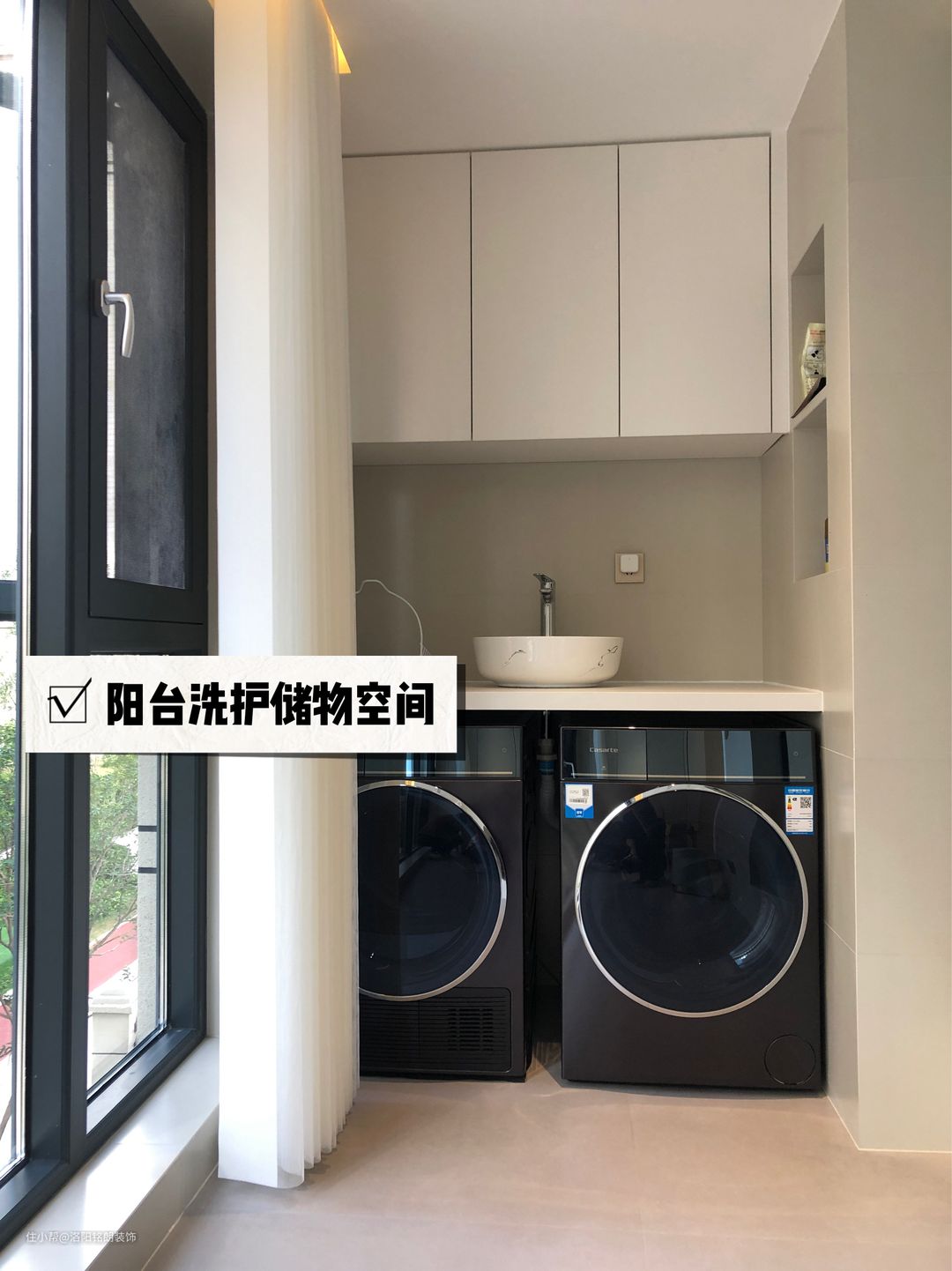 地板:整个屋子是微水泥瓷砖通铺,包括三个卧室的空间,中间都没有用到过门石,显得整个屋子非常宽阔明亮,而且微水泥瓷砖的耐用性和成本比微水泥本身真的要好很多,喜欢微水泥的宝宝可以作为参考。