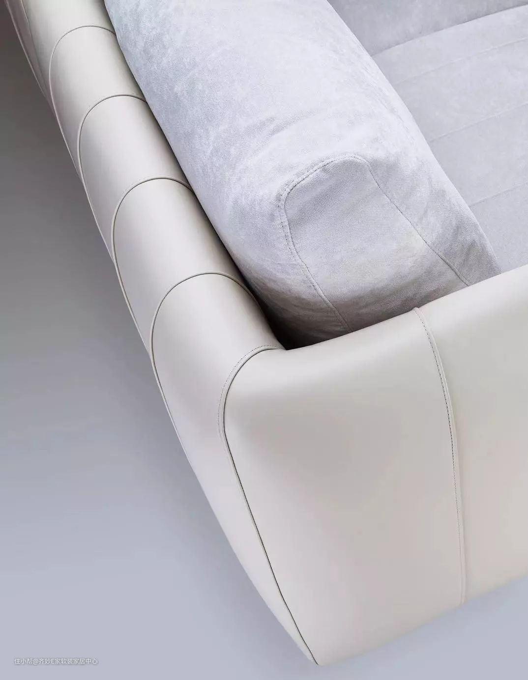 常见的搭配中,皮革多与木材结合,一个柔软,一个坚硬,带给使用者一种温馨的舒适感和温暖感。就如凡希的这款沙发,细节处运用欧式缝合工艺,将优质真皮和纯实木、布艺有机融合,既保证了外观的丰富质感又强化了内在的功能支撑。