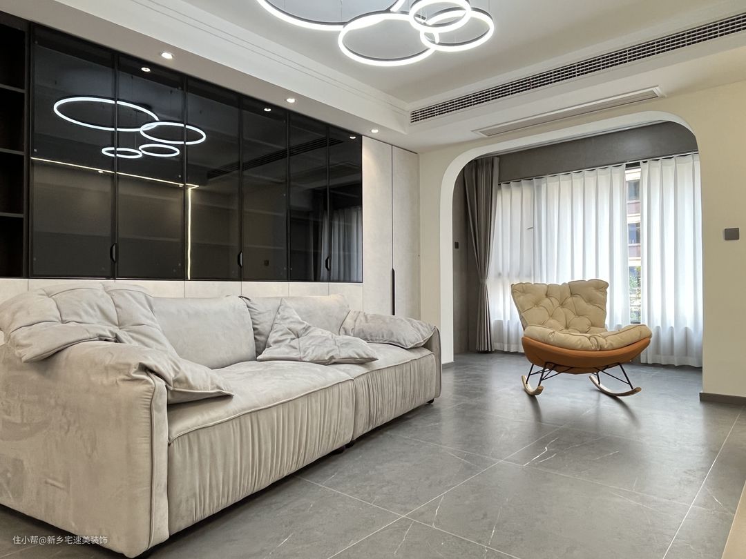 现代简约做不好效果跟容易平平无奇,但做了一个拱形垭口不仅增加了纵深感,空间更有层次与质感,给人眼前一亮。