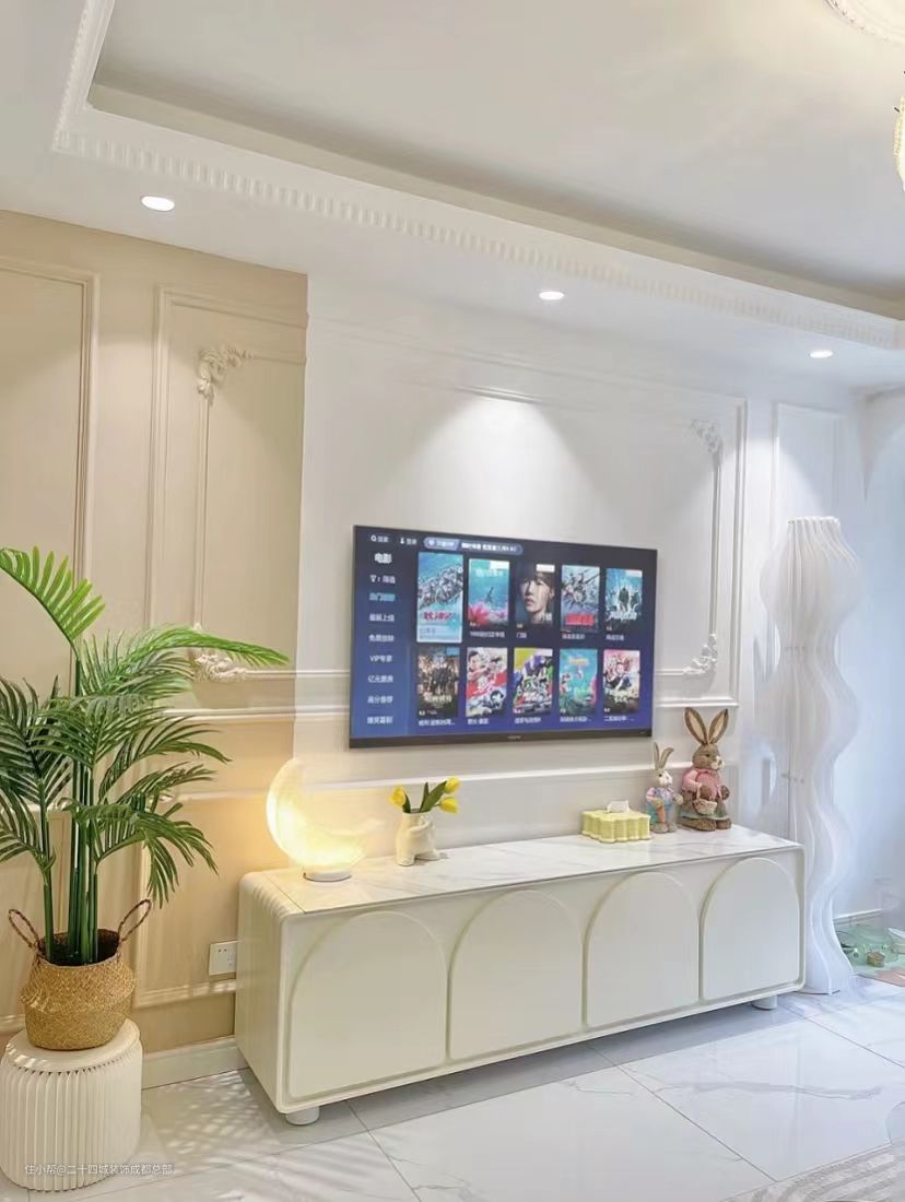 不得不说,电视墙上有没有电视机,是两种完全不一样的视觉体验。小编觉得没有电视机的墙面更好看,朋友们觉得呢?
