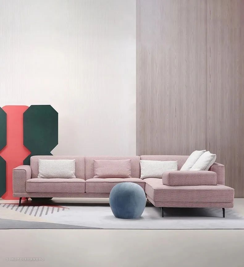 喜欢粉色沙发又害怕过于甜腻,那么这款就是合适的选择。沙发选择了色相饱和度相对较低的裸粉色,来降低“甜度”,在造型上用更理性、硬朗的直线取代圆润的弧线,呈现出简洁大气的造型。