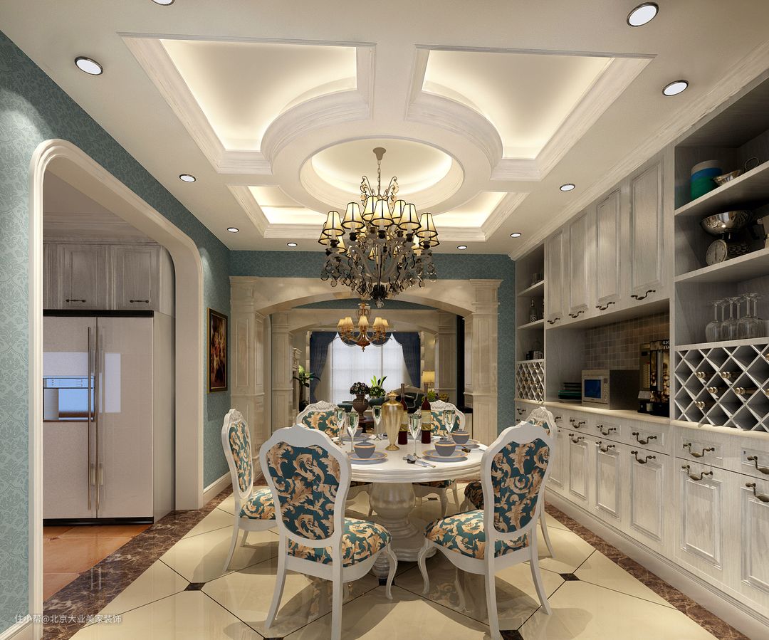 别致的家具造型,触感十足的织布用品恰到好处的表现了设计的搭配美感。柔和典雅的孔雀蓝色系的运用,让主题为古典的空间基调倍加气质感,复古装饰线花纹的描金,更能增添空间华贵的氛围,让典雅与浪漫呼之欲出,突出时尚与新古典混搭的格调与主题。