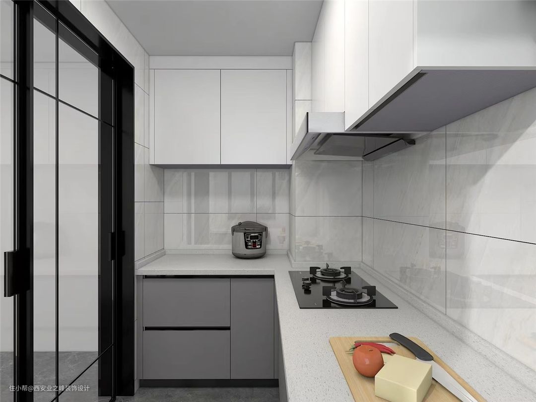 厨房的透明玻璃推拉门阻隔油烟,引入明亮的光感,改善餐区光线之余,也串起餐厨交流。