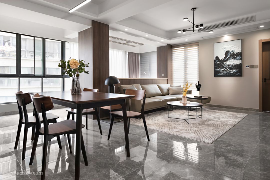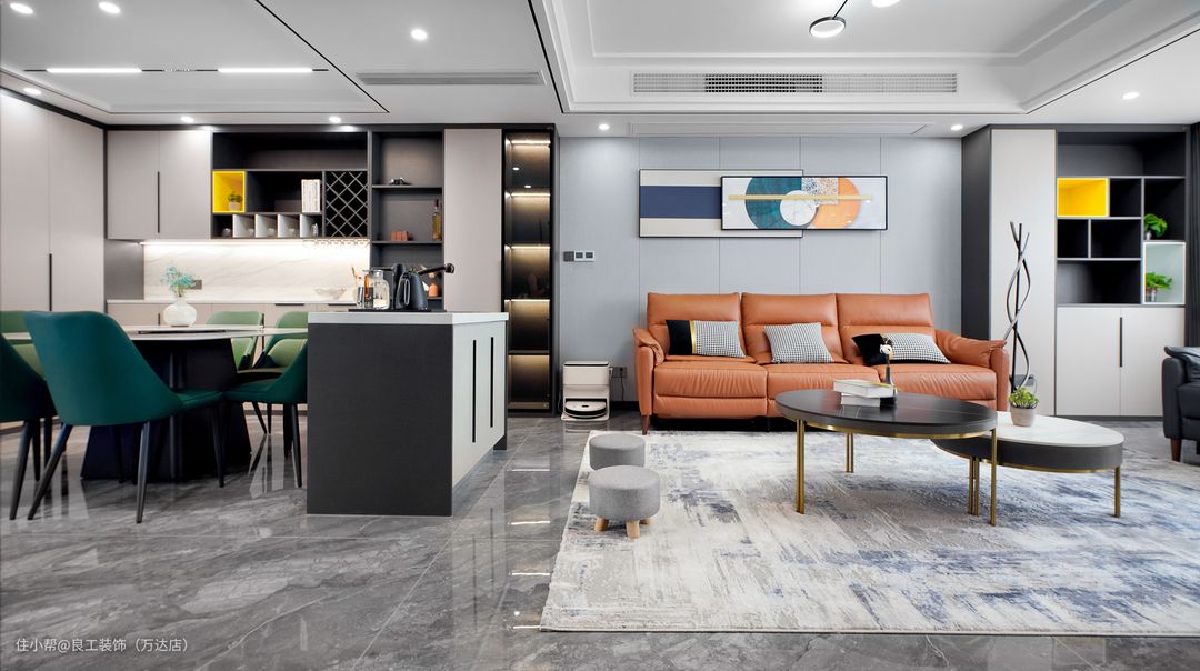 如果客厅与餐厅做完全分隔,很容易在视觉上产生1+1小于2的体验,原本的空间感也会更局促。