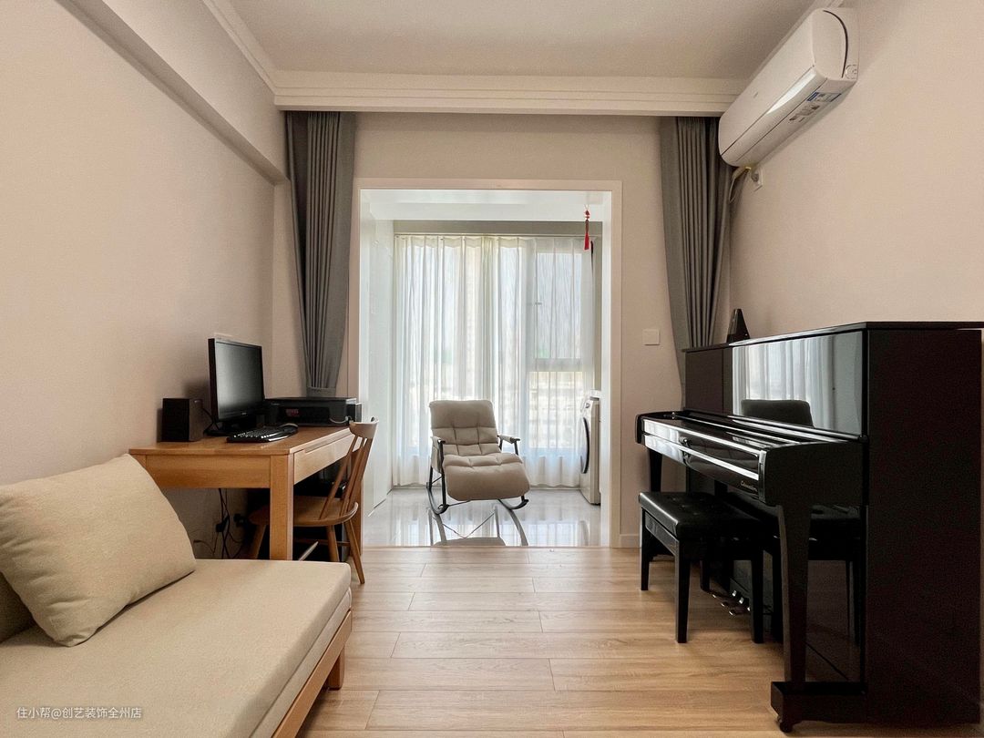 次卧改成了书房,静谧简洁的空间方便业主在这里办公,休息,放松,练习钢琴。