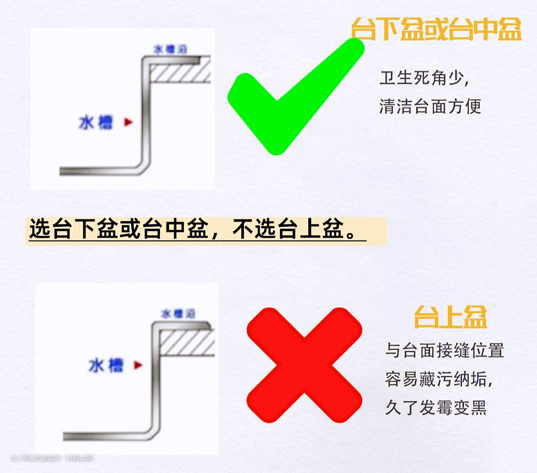注意:台上盆可能导致水槽翘边,水漏到料理台里面。台下盆和台中盆,打理比较轻松。而且整体橱柜效果好。