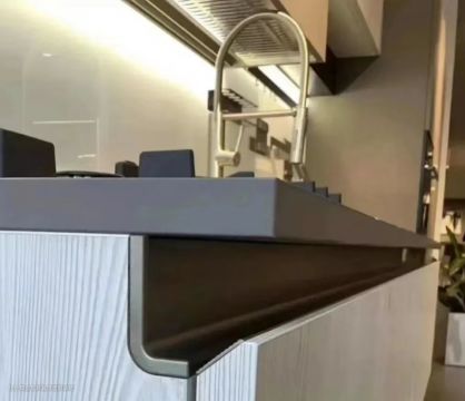 3、 G型拉手(安装门板上下两端,线条感比较强,拉手侧边过于锋利,容易挂伤,侧边可以磨圆,规避缺点)