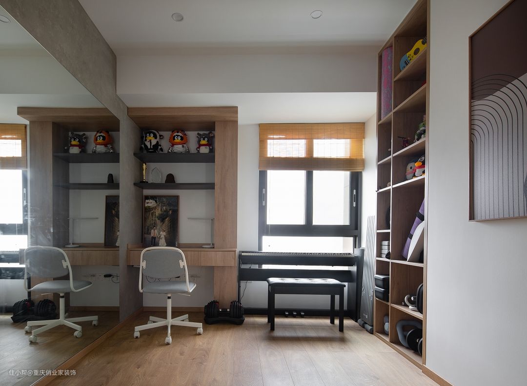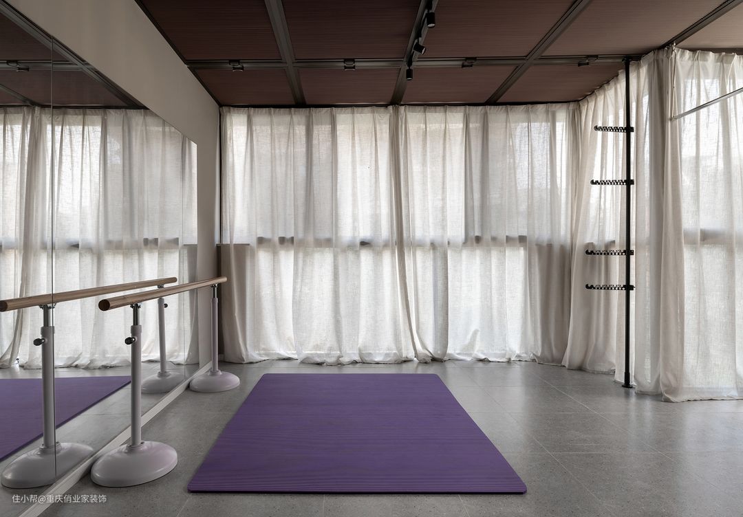 由于整体空间较小,所以本案舞蹈室还兼具了办公、琴房、储物、健身等多种功能。