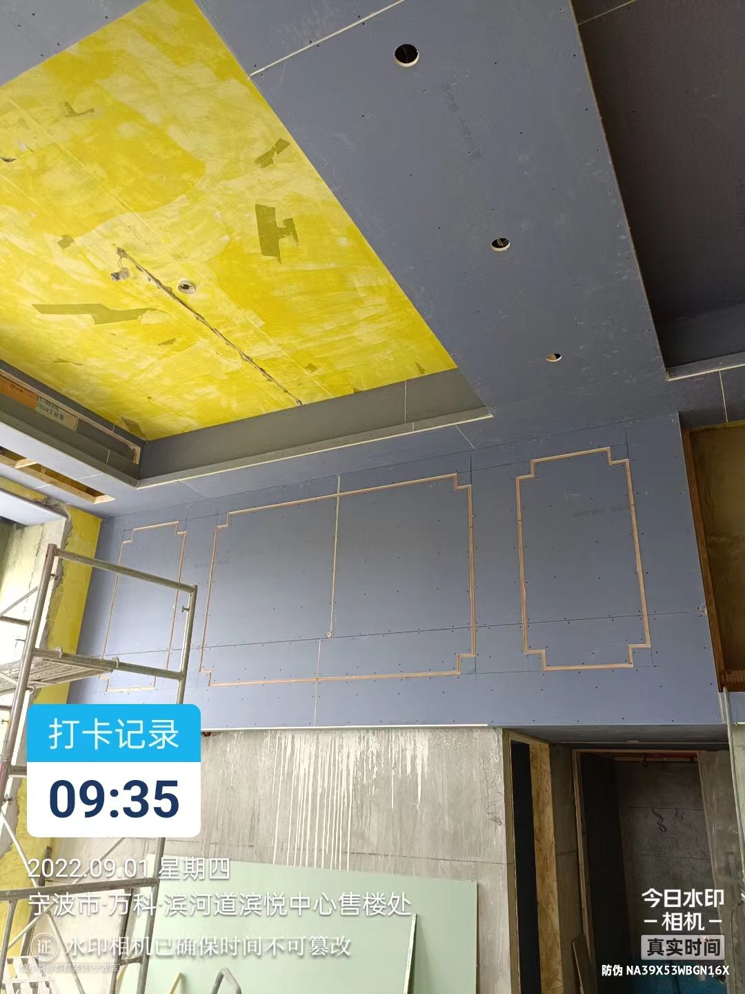 空调风口须按照空调厂家的实际尺寸制作,底部吊顶超出500mm须加主龙骨、吊杆;空调出风口需整张石膏板挖孔,不得拼接;空调出风口挡板预用白膏板封闭,以防出风效果;