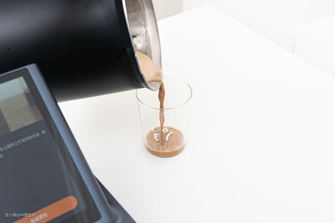 使用预设的摩卡星冰乐菜谱,还可以完成碎冰的操作。冰块、浓缩咖啡、牛奶加入锅内,利用高速的破碎功能。