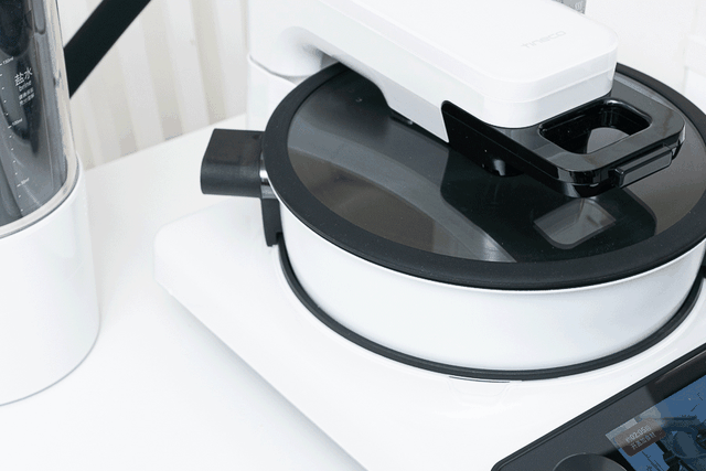 这里为了演示,采用开盖烹饪,实际使用是有安全锁扣的,只有盖上锅盖,并锁定才能运行,安全性有保障。