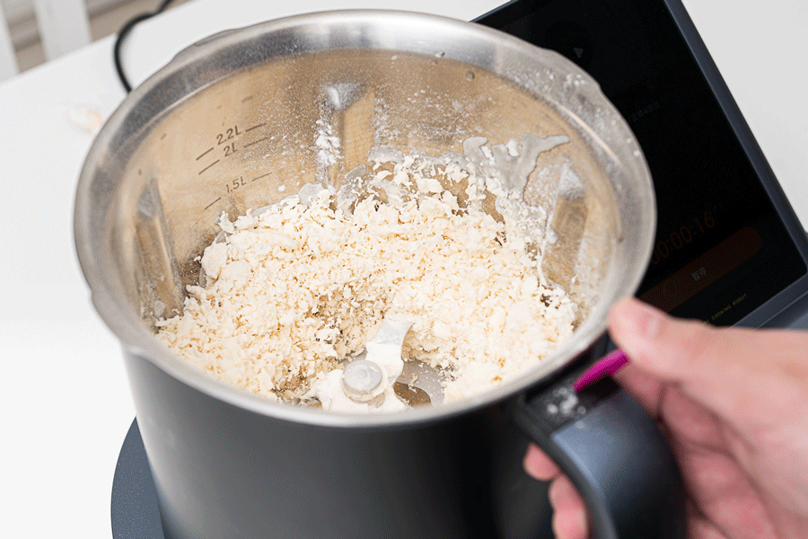使用中速搅拌,放入面粉和水就能揉面,使用预设的饺子皮程序。