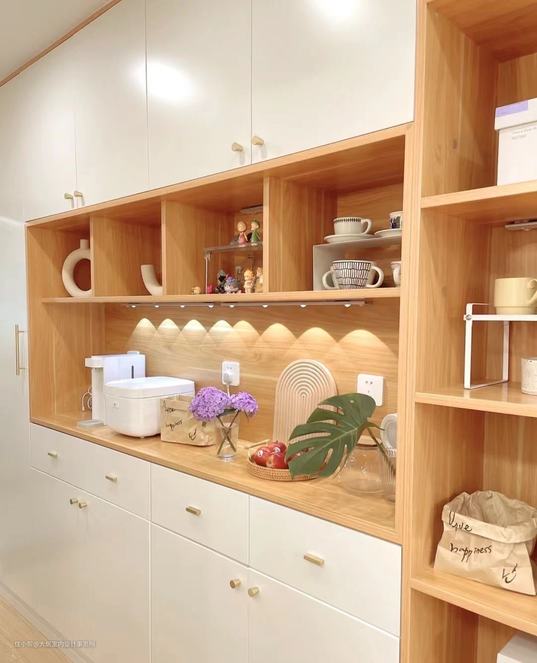 设计餐边柜之前要考虑到它的实用性,不能只看颜值,要想到家中是否有小型电器需要存放位置,是否需要备餐台,是否需要酒柜等等。一定要根据自己的生活习惯,生活方式来设计餐边柜。