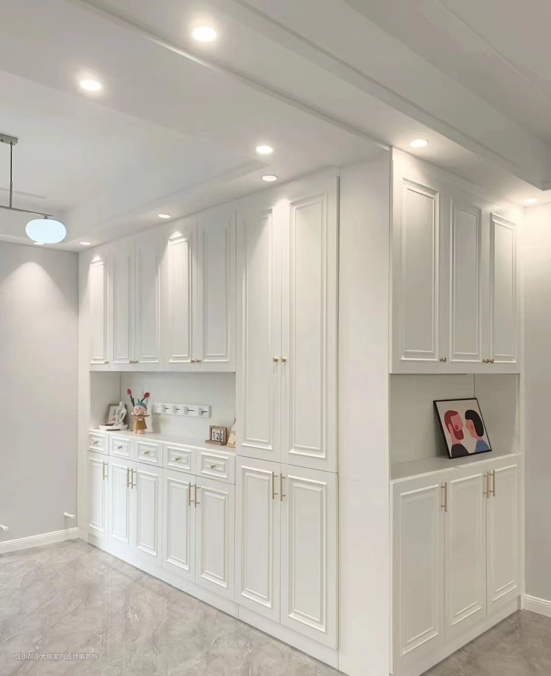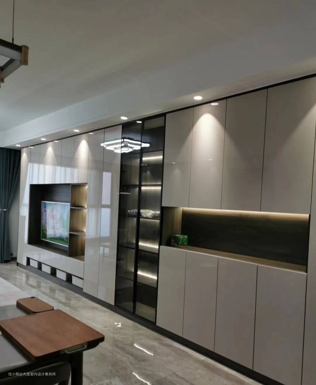 嵌入式餐边柜是将墙体打薄,把餐边柜融进去,这种做法不仅考验师傅的技艺,还要注意墙体的承重情况,根据实际情况而定。