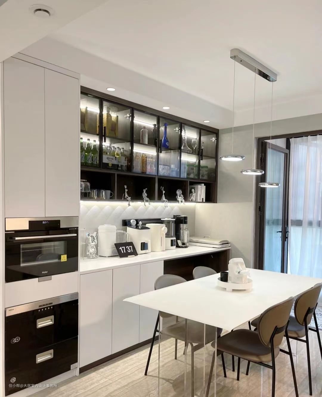 新一代餐边柜设计注重多种功能和用途于一体,一体式组合定制设计,不仅可以充分满足各种功能需求,还可以让空整体空间观感更加整洁大方。