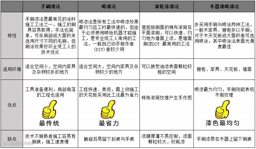 面漆的铺刷,工法不同,效果也不同,做个简单的工法汇总,帮大家快速了解: