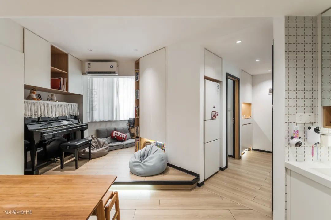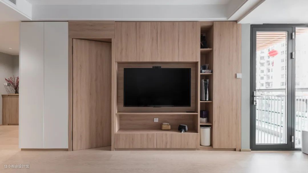 层高较小的房子,房门的高度也会影响空间感,比如常规的房门,门顶与天花距离小,会显得层高矮得明显。因此在层高较小的情况下,可以用隐形门或一门到顶的设计,尤其是房门开在背景墙等显眼位置的时候。