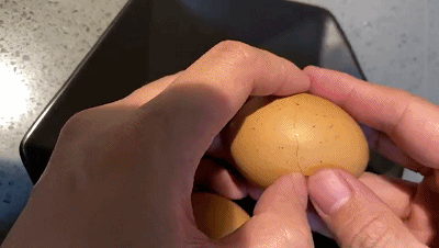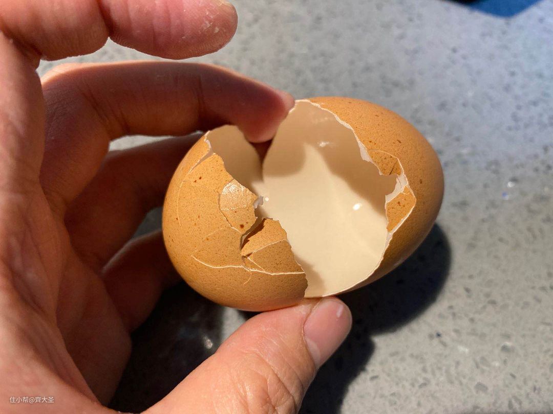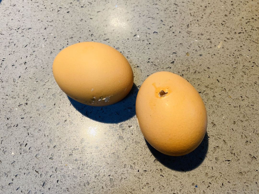 未钻孔的鸡蛋基本已经被热水煮熟了,鸡蛋我没浪费,直接吃了,口感Q弹,味道真的不错。