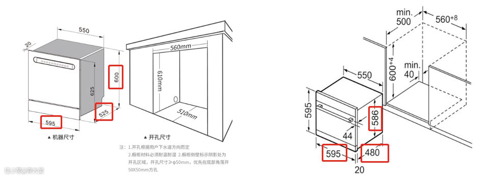 无论是水槽式还是橱柜式,都要在装修时预留好尺寸,最好在橱柜排尺前确定好洗碗机型号(无需购买)。