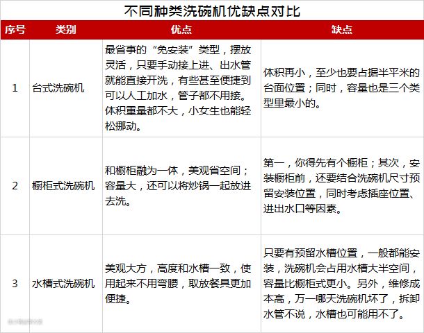 缺点:只要有预留水槽位置,一般都能安装,洗碗机会占用水槽大半空间,容量比橱柜式更小。另外,维修成本高,万一哪天洗碗机坏了,拆卸水管不说,水槽也可能用不了。