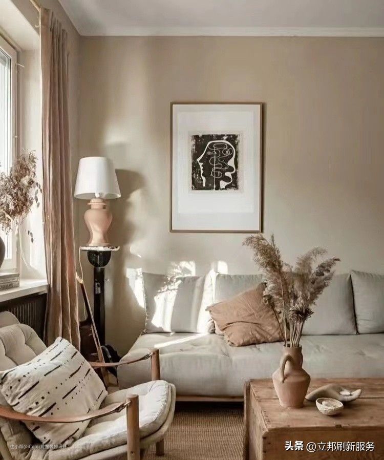 配色:米色+浅咖+灰色。除了色彩的搭配,在软装搭配中适当运用棉麻、丝绒、陶土等天然材质,也能让人无比放松和舒适,充满着自然的气息。