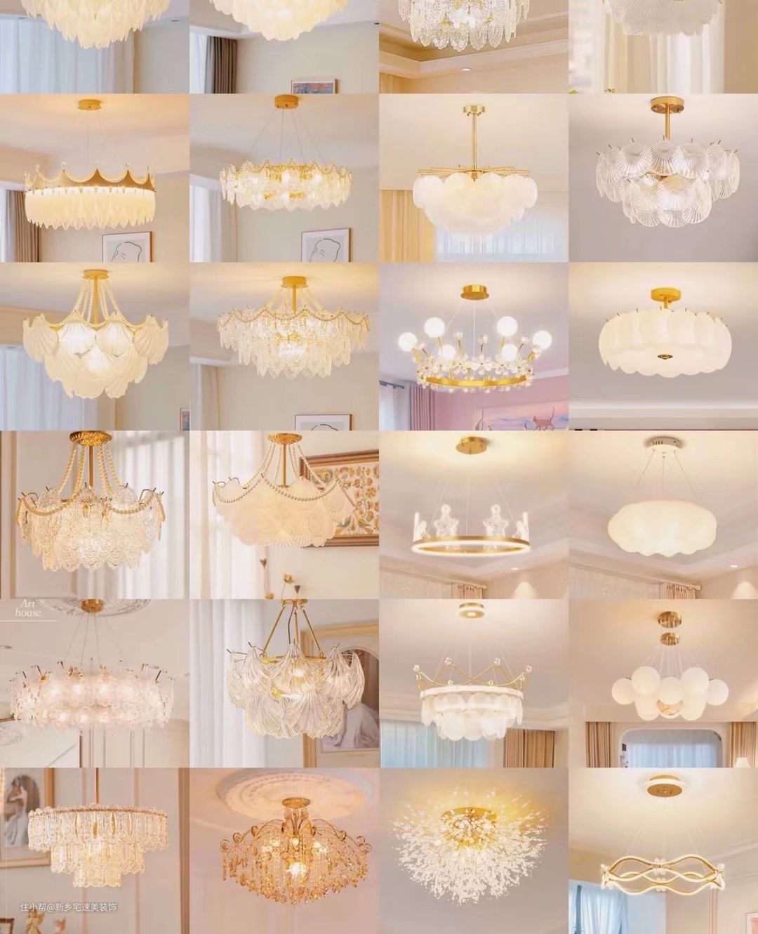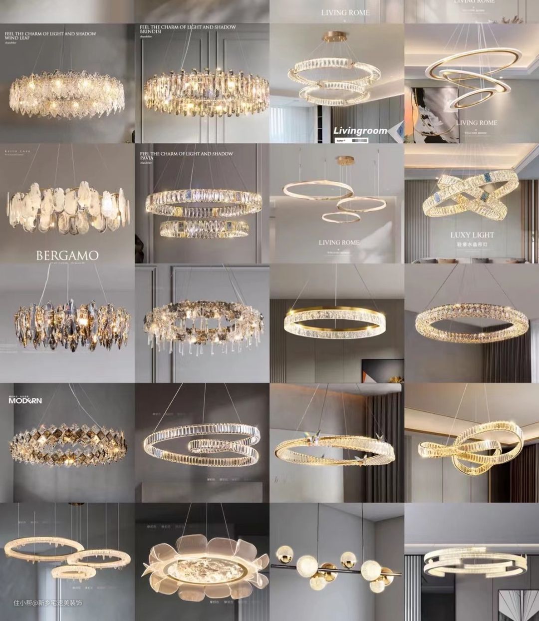 上面的吊灯非常适合现代轻奢,或者法式,很有艺术气息。吊灯适合于客厅。以悬吊的方式垂挂于天花板,并通过电线和拉管等点亮光源。吊灯种类繁多,用于居室的分单头吊灯和多头吊灯两种,前者多用于卧室、餐厅;后者宜装在客厅里。