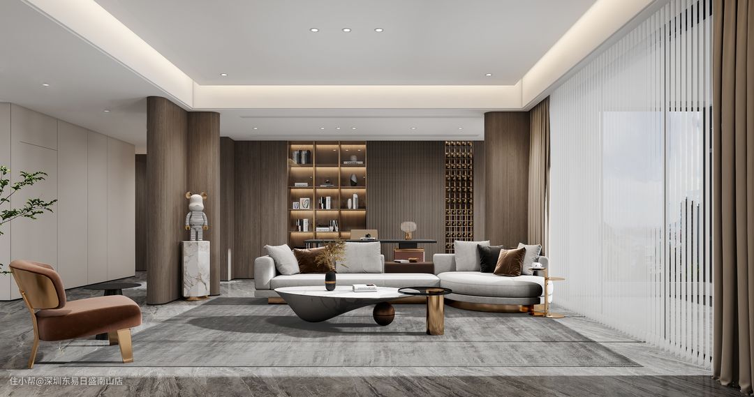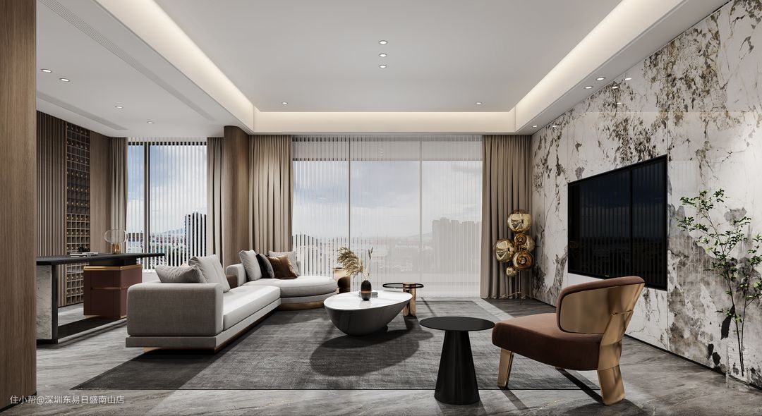 深圳装修:250㎡山语海苑轻奢风,典雅高贵,落落大方的客厅