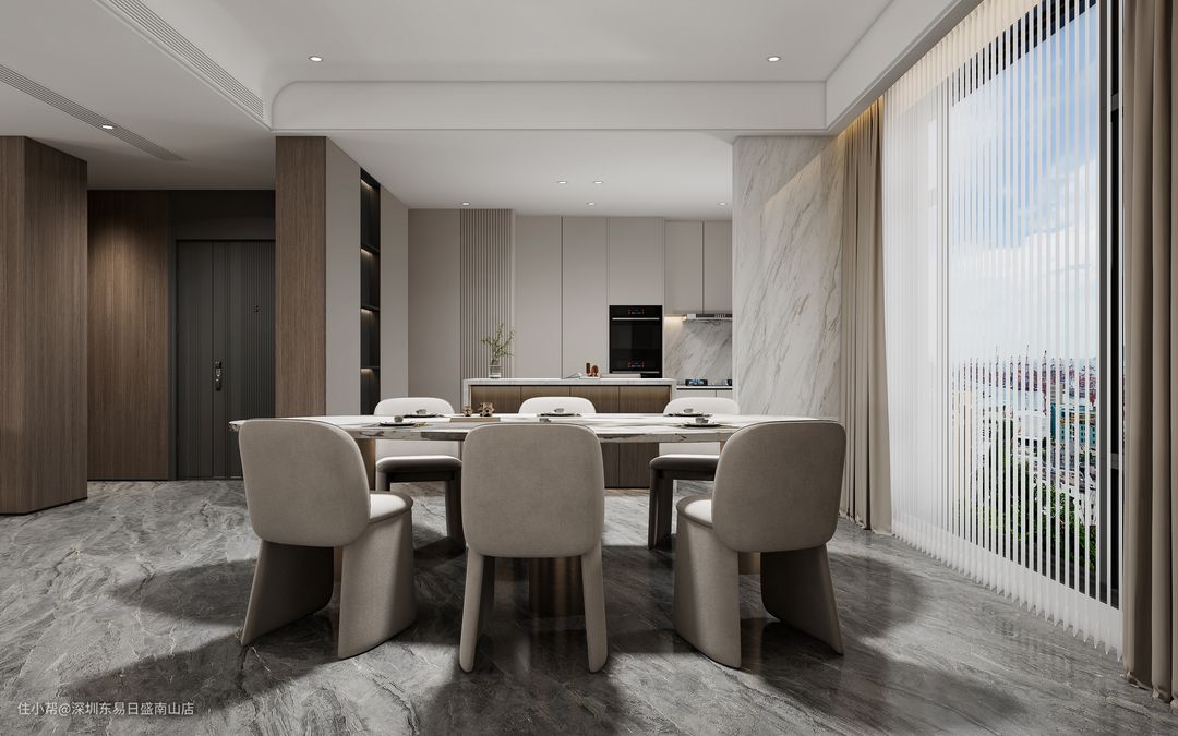 一整面的落地窗,自带户外用餐既视感,高级且拥有美学的桌椅设计,更显空间质感