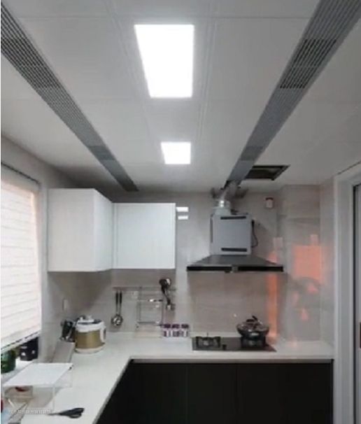 平面吊顶。相当于给天花板加了一个平板,通常在这个里面安装嵌入式光源,它不占用太多的层高,便于安装通顶,柜子造型简洁成本低。