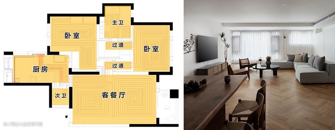 地暖作为隐蔽工程,大部分结构都埋在地面下,因此后期无法追加。在前期规划的时候一定要提前布局好地暖的铺设区域,设想好未来有可能的家具摆设变动。