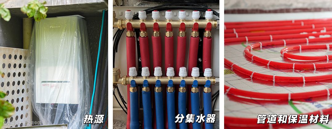 一套地暖系统主要由热源、分集水器、管道和保温材料构成。